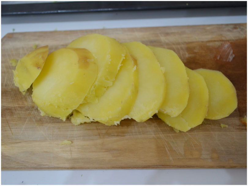 Pelate le patate e tagliatele a fette di massimo 1 cm.
