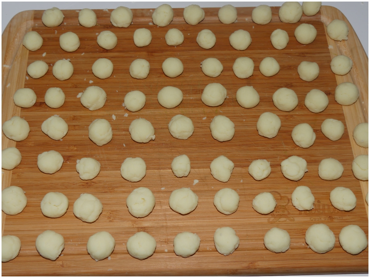 Create le palline con le mani, cercando di farle di dimensioni simili, di compattare bene e di non lasciare troppe crepe sulla superficie.