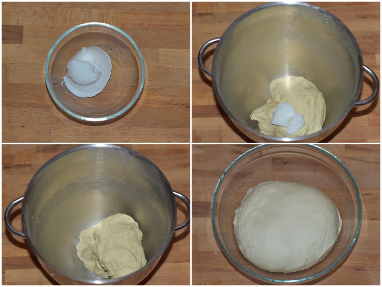 Aggiungete lo strutto in un paio di riprese, unendo il successivo solo dopo che il precedente è stato incorporato completamente.