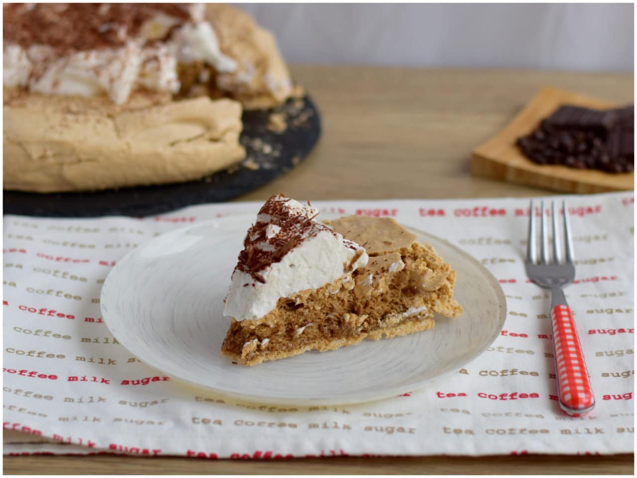 Dopo la pavlova classica e quella al cioccolato ho pensato di cimentarmi con la ricetta della bravissima Nigella e preparare la sua pavlova al cappuccino. Se amate le meringhe e amate il caffè questa ricetta vi renderà felici. Se non siete amanti delle meringhe l'aggiunta del caffè potrebbe finalmente rendervele simpatiche, e se il gusto troppo caffettoso non vi convince: tranquilli, la dolcezza della meringa lo stempera alla perfezione! Insomma, provate questa pavlova al cappuccino e non ve ne pentirete ;)