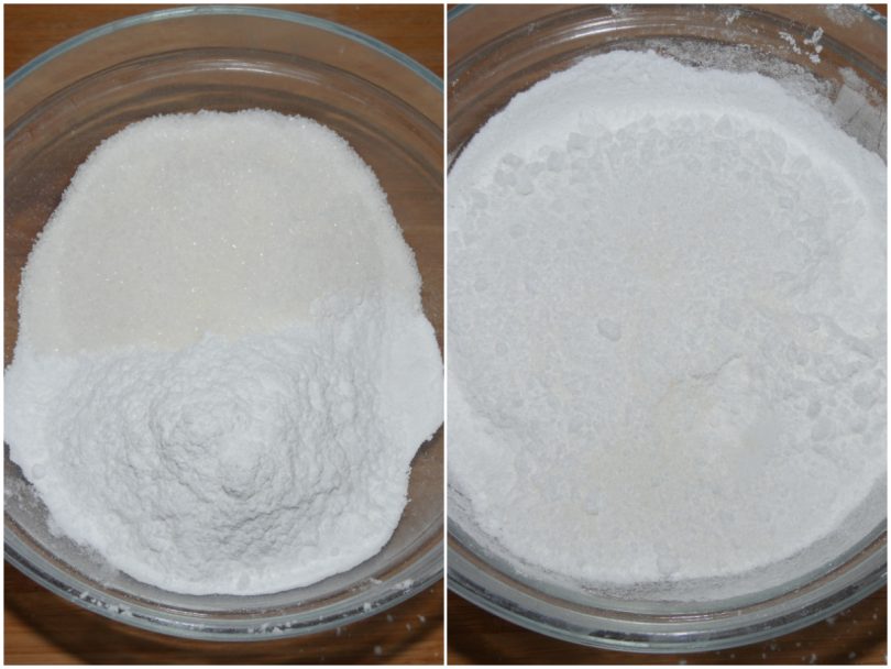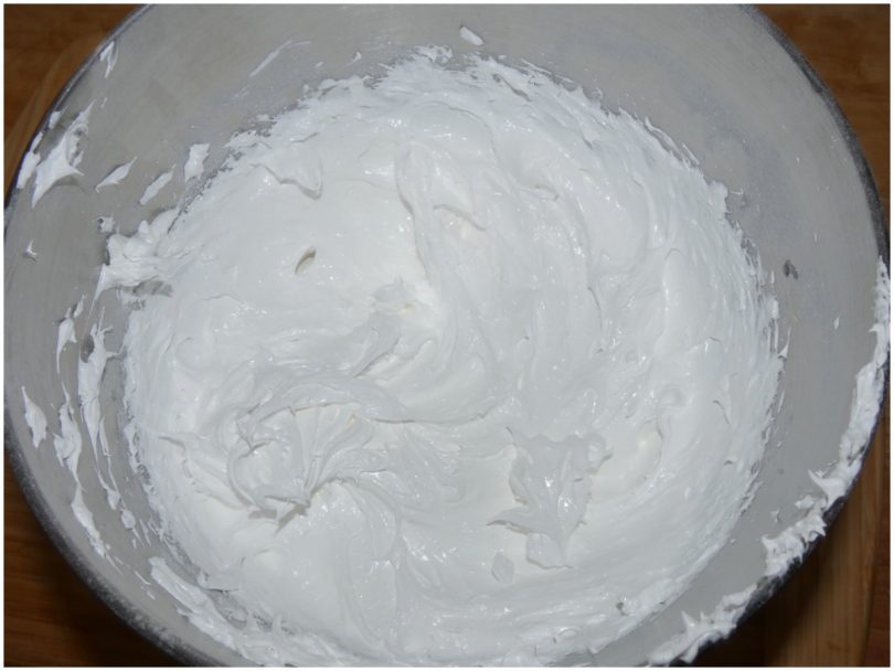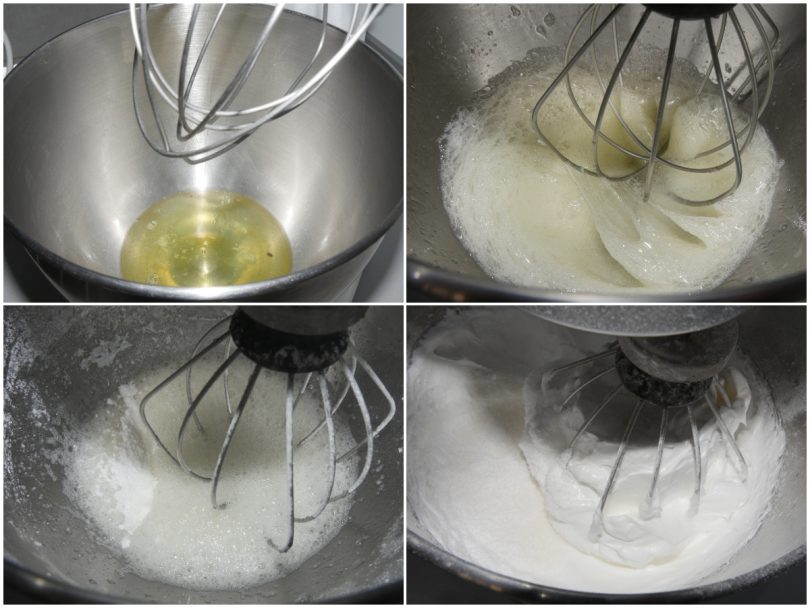 Quando gli albumi inizieranno a schiumare, iniziate ad aggiungere lo zucchero, un cucchiaio alla volta.Continuare a montare finché la meringa non sarà liscia e soda.