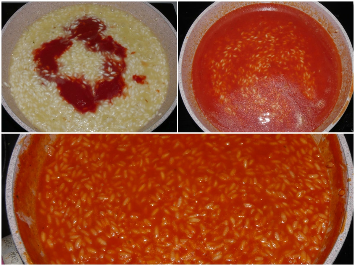 Infine unite anche la passata, aggiustate di sale e pepe e tenete da parte (dovrà risultare ancora molto al dente e un pochino all'onda, cioè con il fondo di cottura non troppo ristretto).