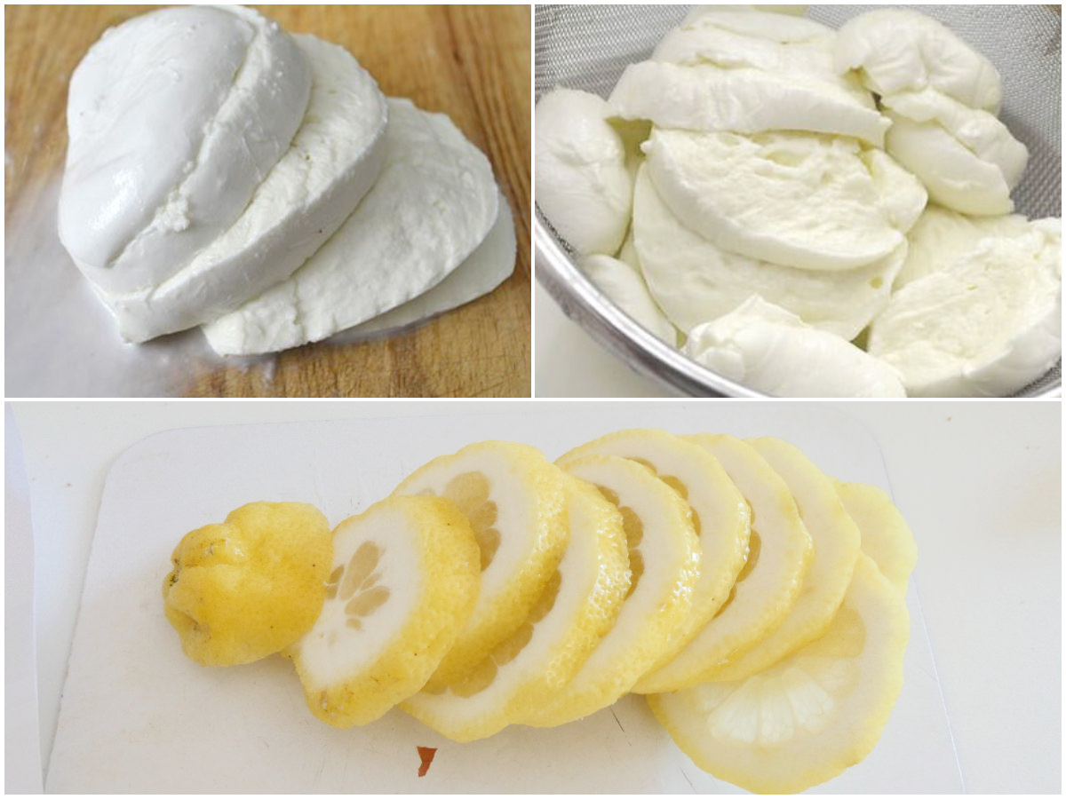 Nel frattempo preparate il condimento: tagliate il formaggio e il limone (ben lavato) a fettine, in modo che il formaggio perda un po' di siero.