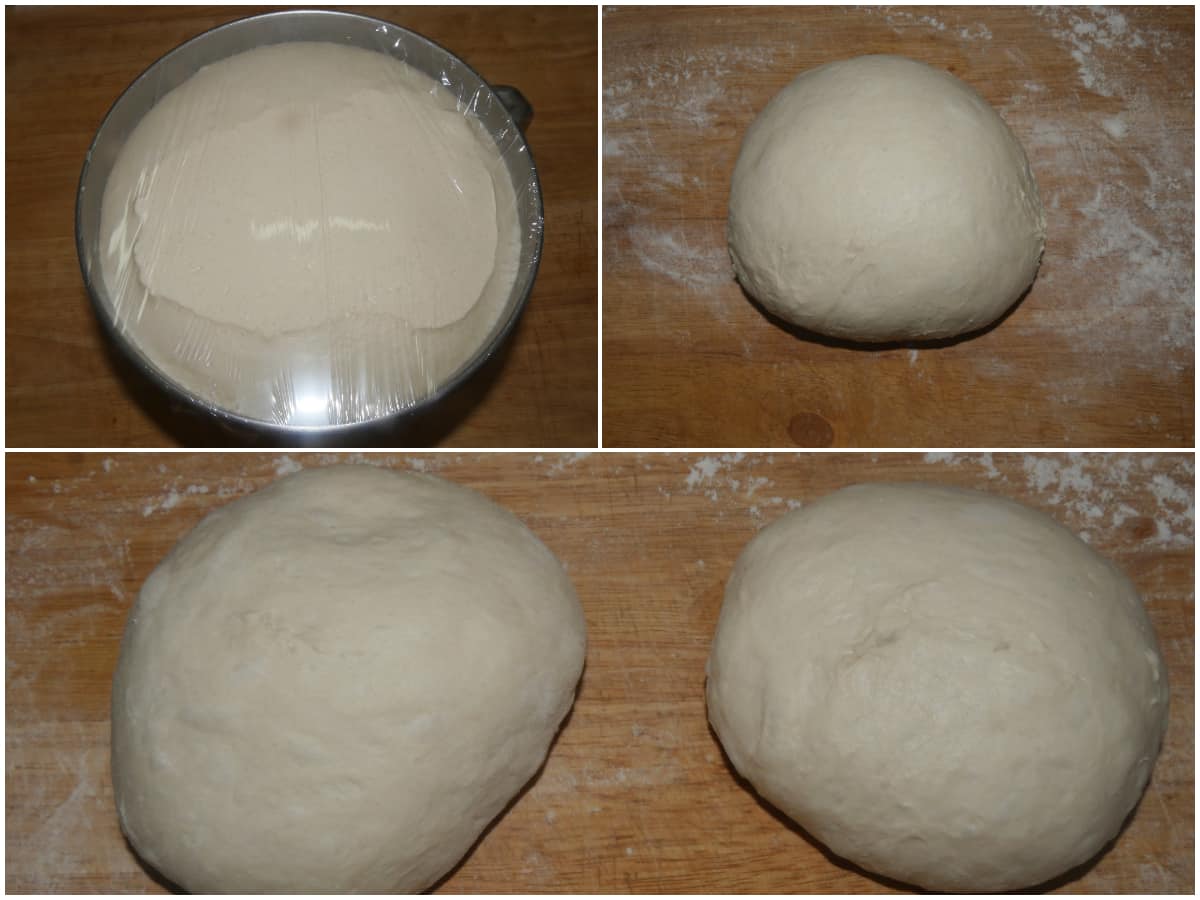 Riprendete l'impasto, sgonfiatelo con le mani leggermente infarinate e dividetelo a metà, quindi lasciateli crescere nuovamente in frigo, in un contenitore coperto con pellicola, per altre 8-12 ore.