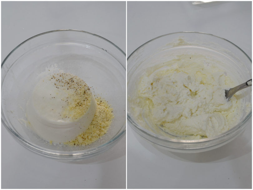 Preparate la farcia per il cornicione lavorando la ricotta con pepe e pecorino.