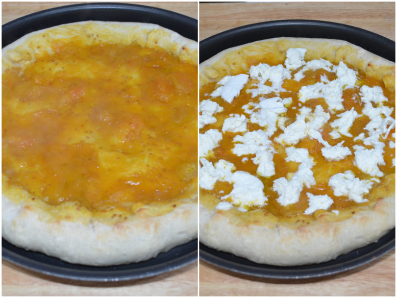 Cuocete in forno ventilato preriscaldato a 250°C per circa 15 minuti, quindi riprendete la pizza, aggiungete la mozzarella e cuocete per altri 5 minuti.