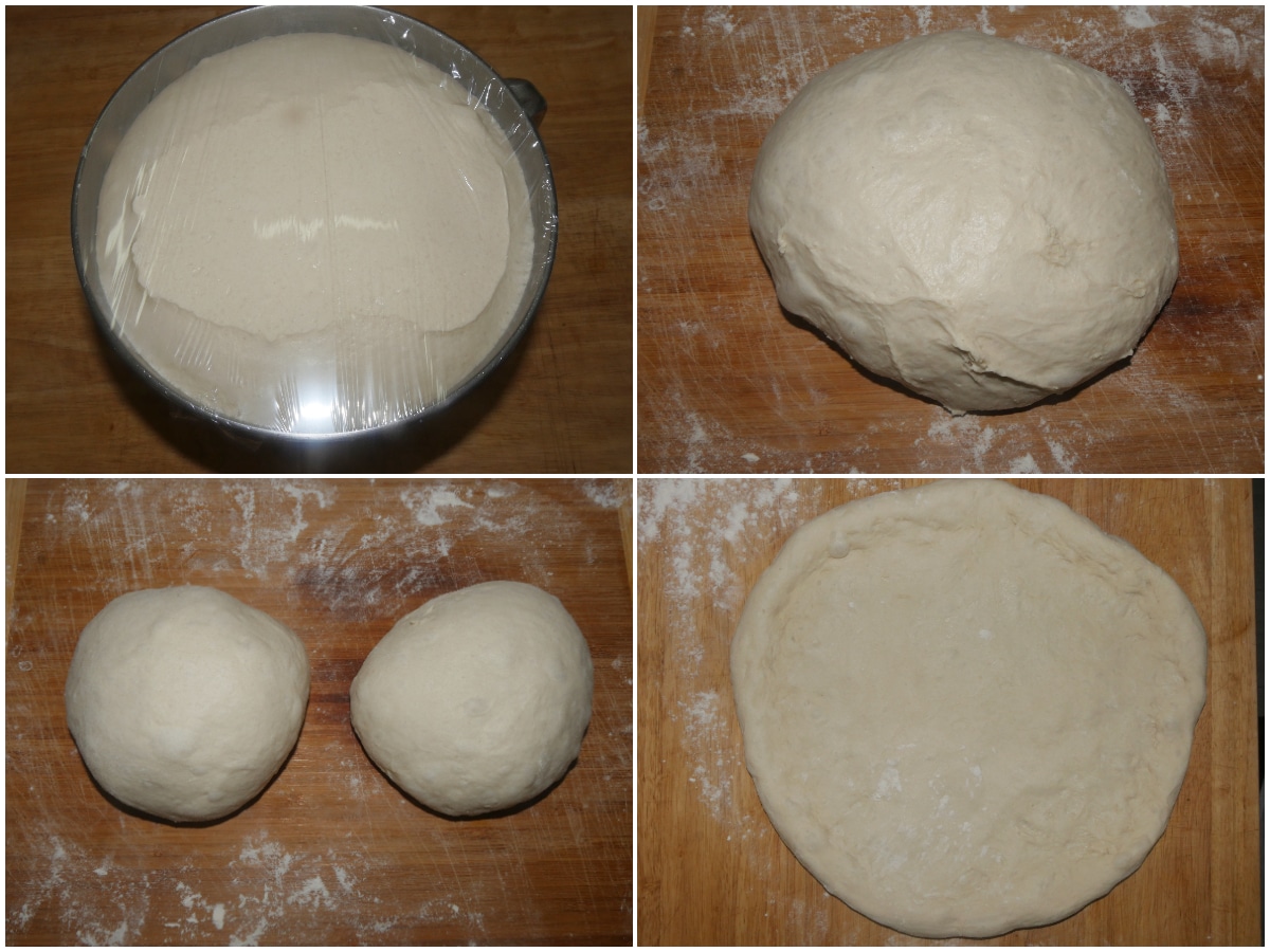 Riprendete nuovamente i panetti e stendeteli con le mani, cercando di partire dal centro e allargandovi man mano verso il bordo, lasciandolo il bordo gonfio, in modo che si crei un bel cornicione.