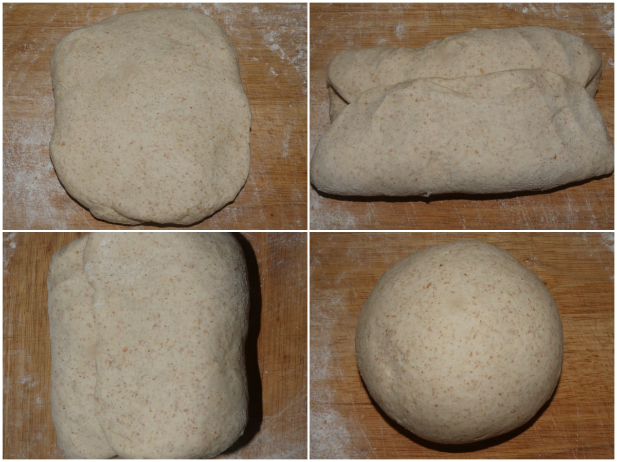 Trasferite sul piano di lavoro leggermente infarinato ed effettuate un giro di pieghe (qui la guida per farlo al meglio).