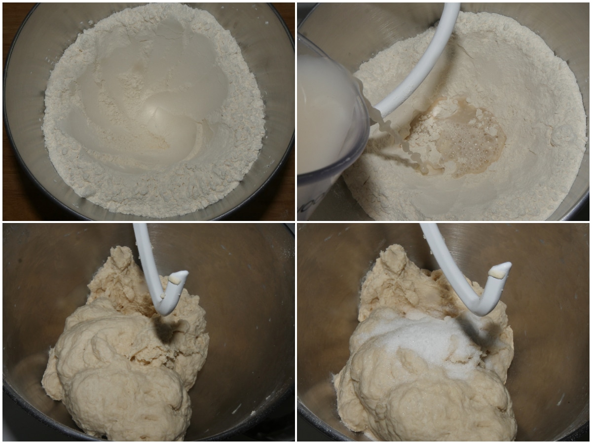 Innanzitutto preparate l'impasto per la pizza: sciogliete zucchero e lievito nell'acqua e incorporatelo alla farina, quindi aggiungete anche sale e olio.
