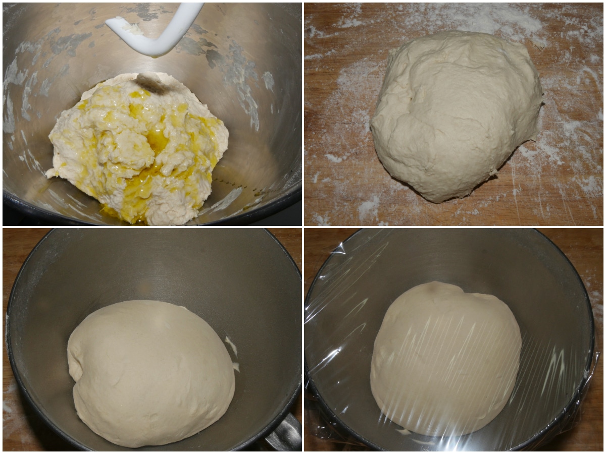 Lavorate fino a far incordare l'impasto, quindi coprite la ciotola con pellicola per alimenti e lasciate lievitare in un posto caldo per almeno 3 ore o finché non sarà almeno triplicato di volume.