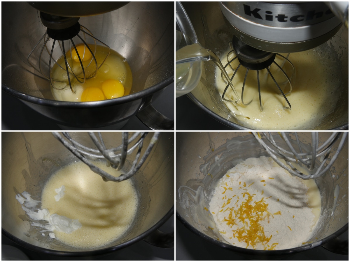 Montate le uova con lo zucchero in una ciotola, poi incorporate prima l'olio, poi lo yogurt e il sale, infine anche farina e lievito setacciati e buccia di limone.