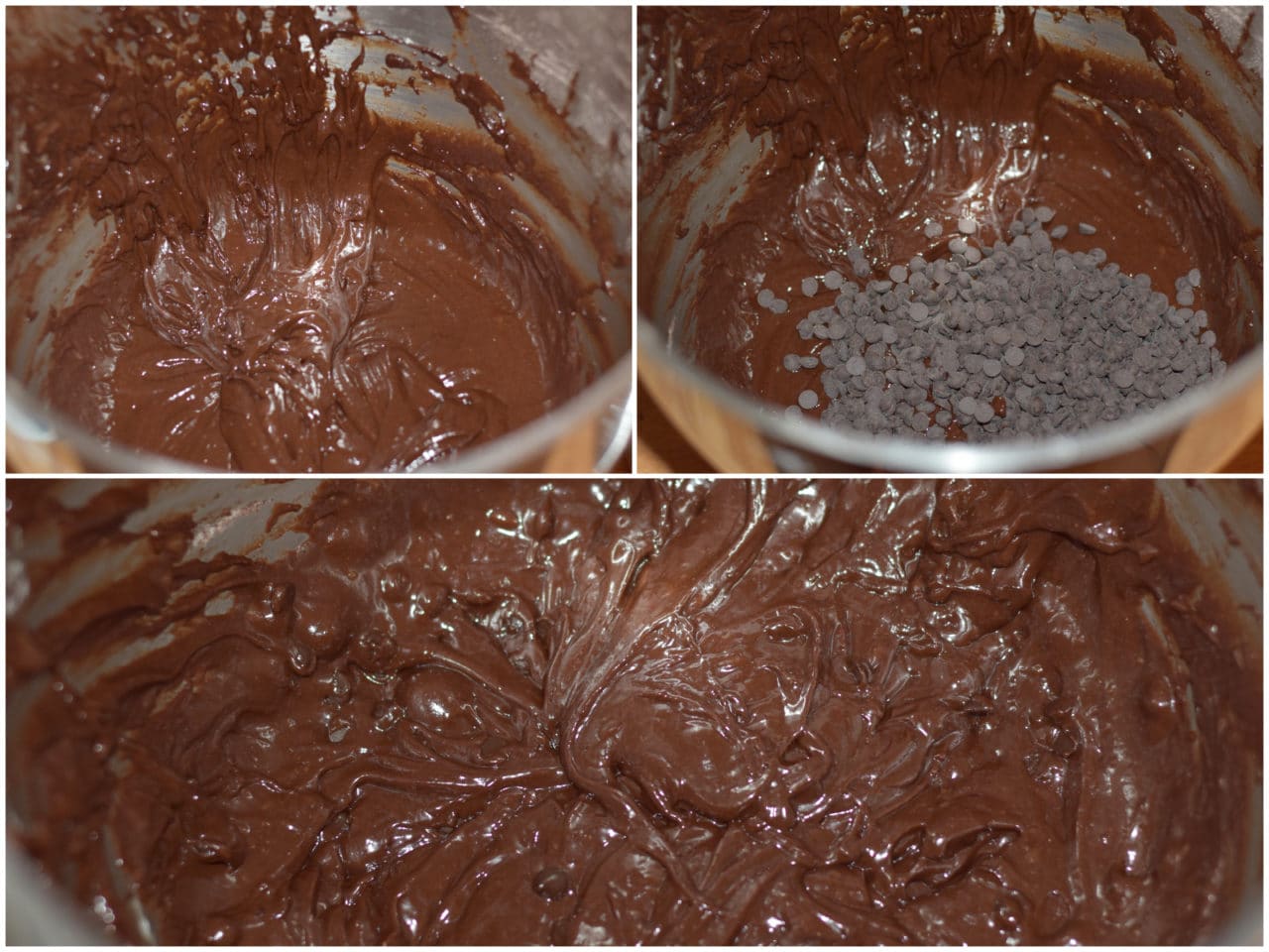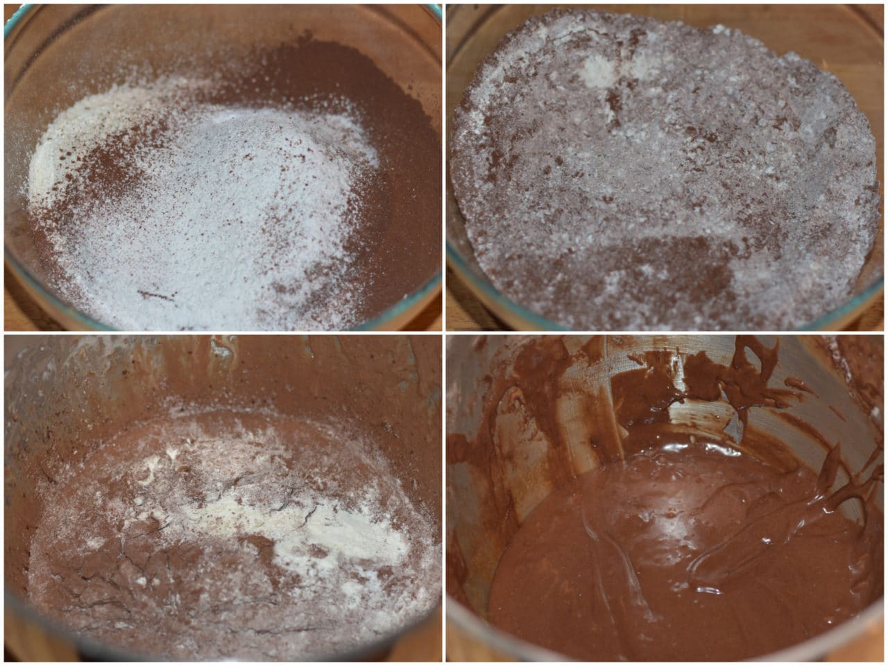 Una volta incorporato completamente il cioccolato, unite anche latte e olio, sempre a filo.