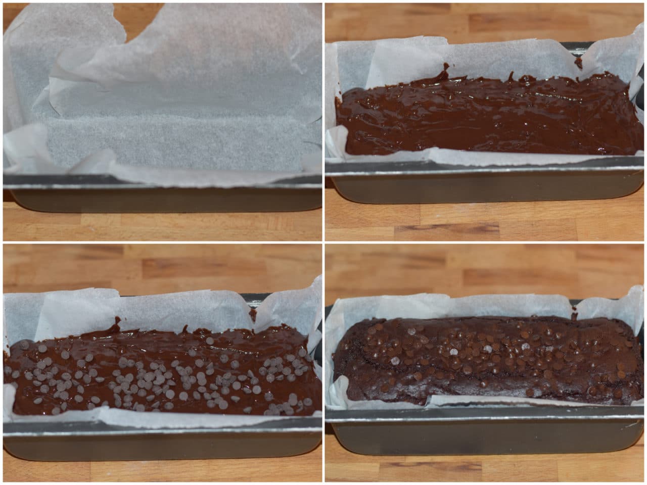Versate il composto nello stampo rivestito di carta forno, distribuite sulla superficie le gocce di cioccolato rimaste e cuocete per circa 45-50 minuti a 170°C, in forno statico già caldo.