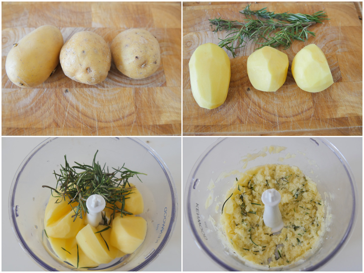 Mettete patate e rosmarino in un mixer e frullate fino ad avere un composto omogeneo.