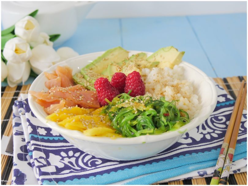La poke bowl è un piatto di origine hawaiana a base di pesce crudo, solitamente tonno o salmone, accompagnato da riso, frutta e varie salsine. Si tratta quindi di una mega insalatona molto ricca e salutare, buonissima e anche piena di superfood, per un boost di vitamine, sali minerali, antiossidanti e grassi buoni. Preparare una poke bowl in casa è molto semplice, gli ingredienti potranno variare, ma di solito ci sono sempre degli elementi di base: una fonte di carboidrati, un alimento proteico, il condimento e il topping, che sia decorativo ma che aggiunga anche altri elementi che vadano a completare il piatto, dal punto di vista quindi non solo estetico, ma anche nutrizionale e della consistenza.