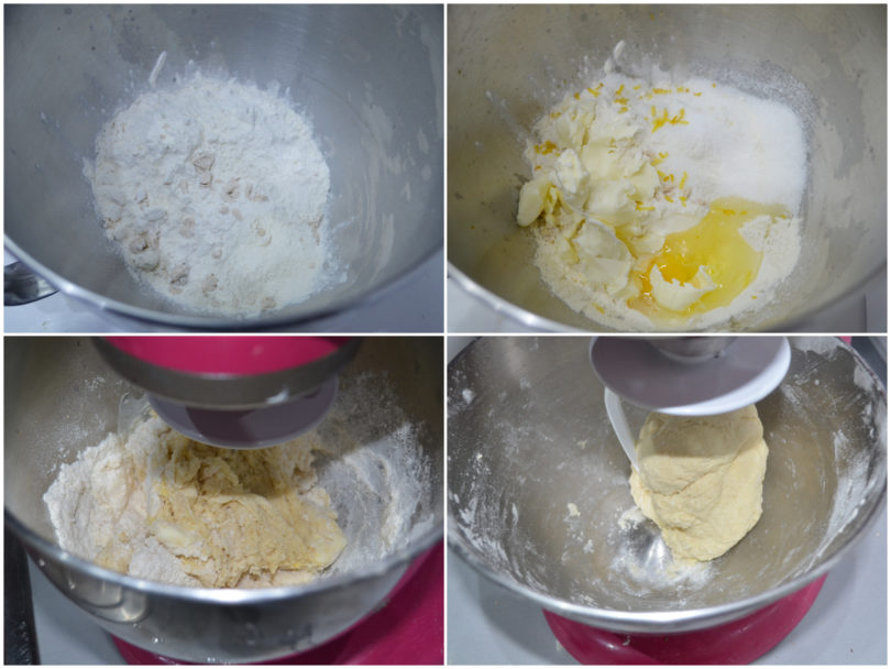 Aggiungete zucchero, buccia di limone, burro a pezzetti e uovo.