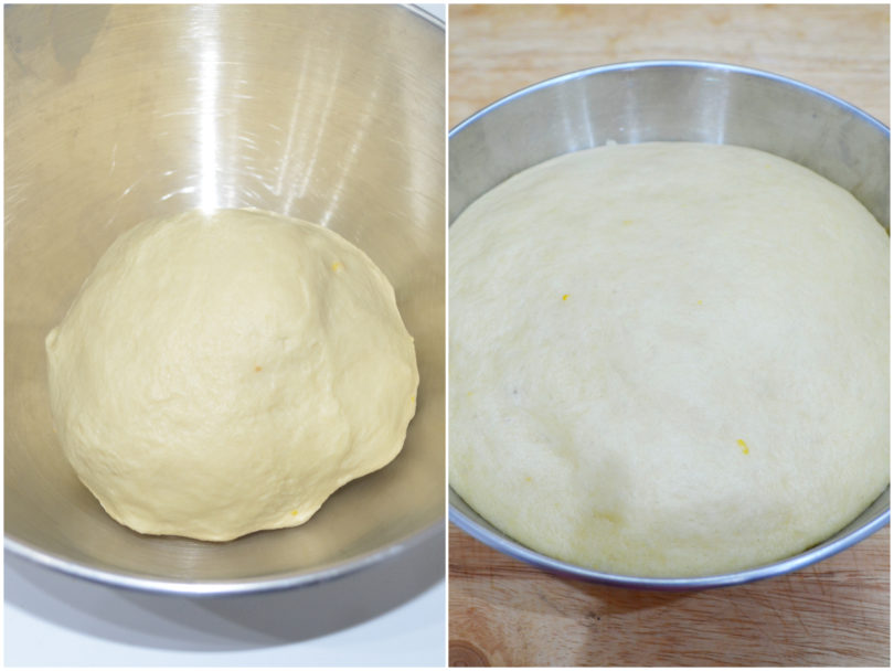 Coprite la ciotola con un canovaccio pulito e fate lievitare a temperatura ambiente per almeno 2 ore o fino al raddoppio.