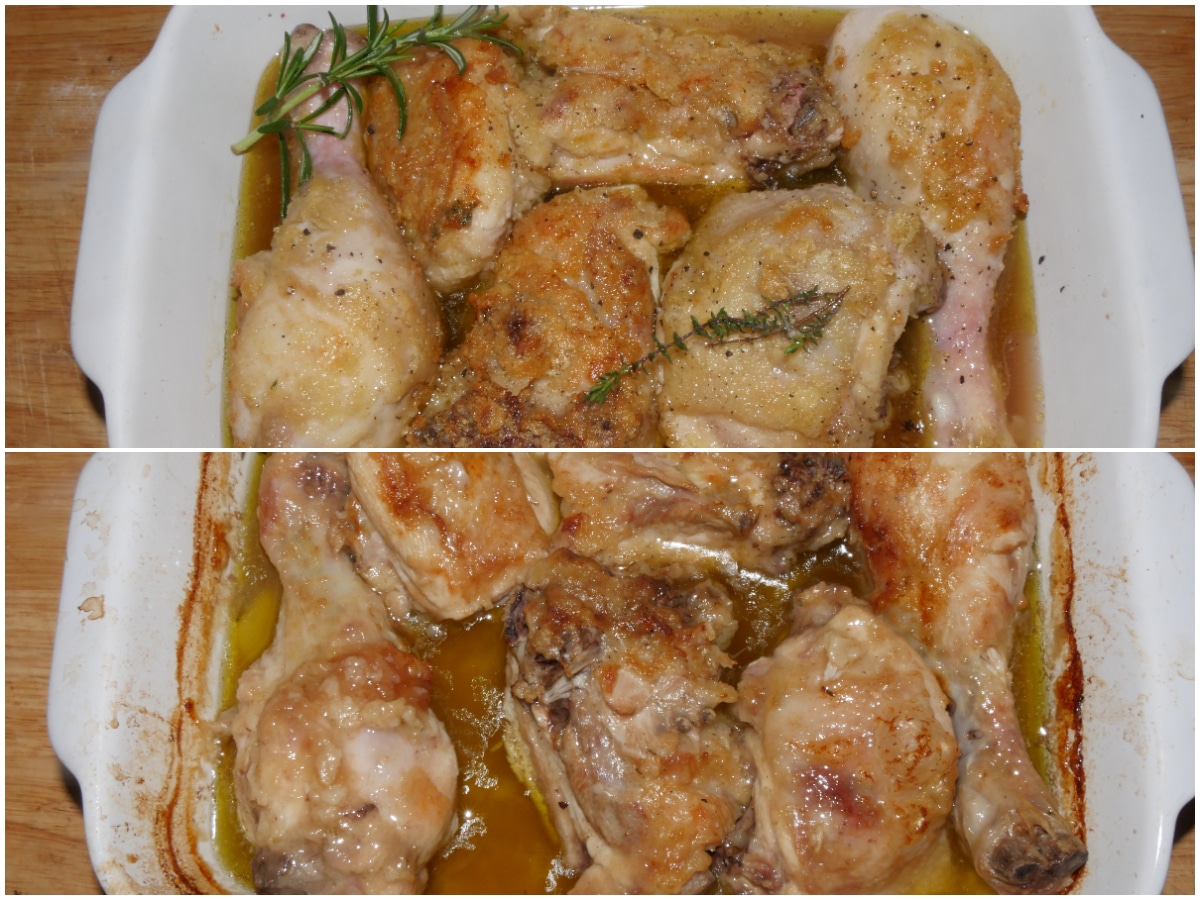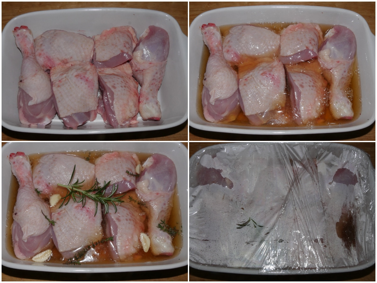 Rimettete il pollo nella marinata e cuocete per 40-50 minuti a 200°C in forno ventilato.