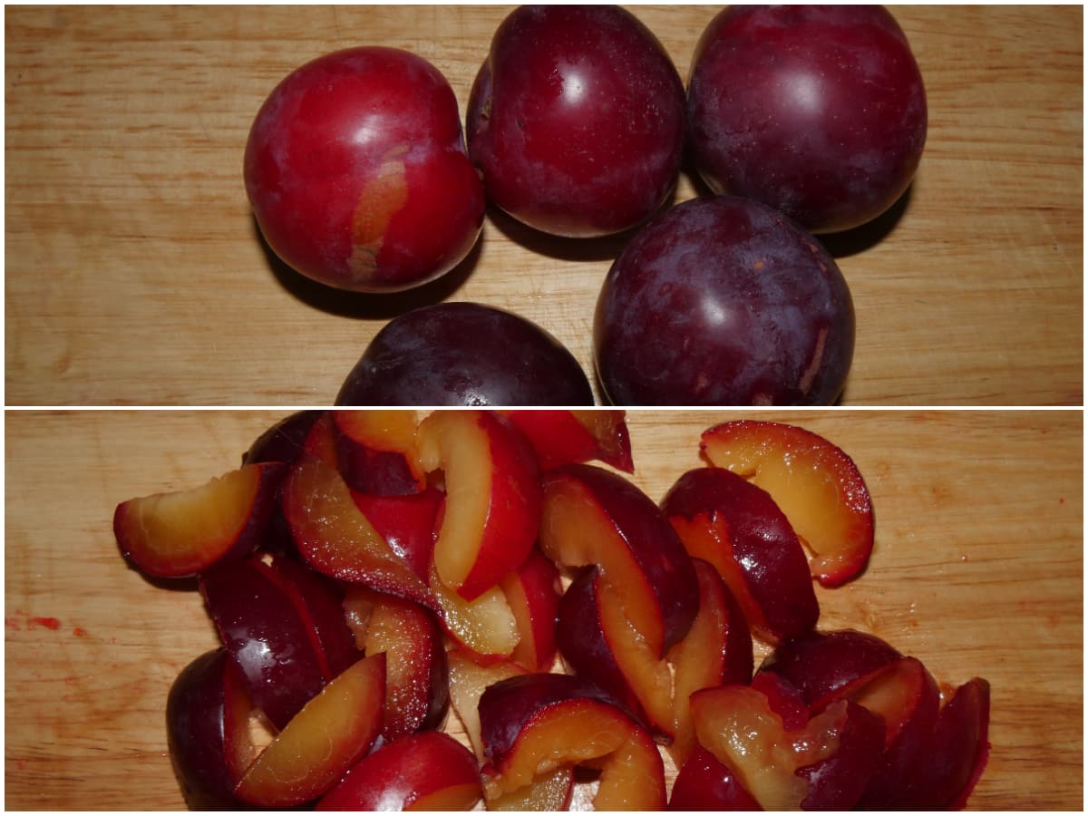 Nel frattempo lavate bene le prugne e tagliatele a spicchi, eliminando i noccioli.