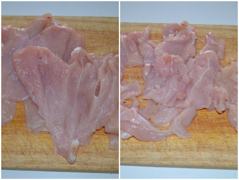 Tagliate il pollo in straccetti.
