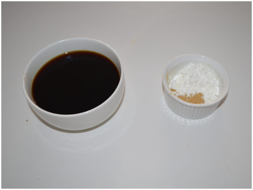 Preparate la salsina agrodolce: mescolate aceto di mele, salsa di soia e acqua in una ciotolina.
