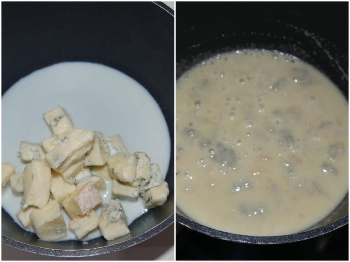 Nel frattempo sciogliete il restante gorgonzola nel latte, quindi fate restringere per creare una cremina.