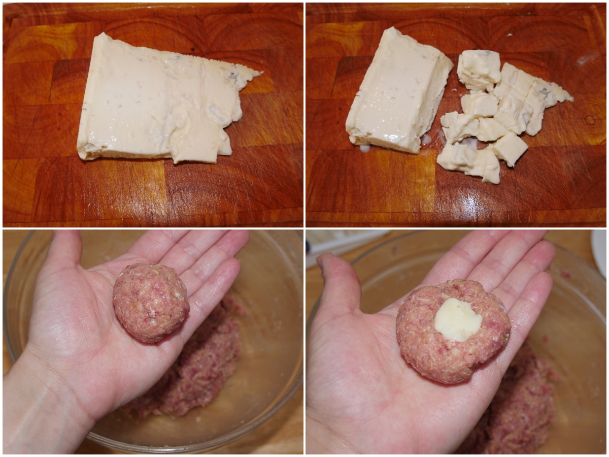 Create le vostre polpette, cercando di farle di dimensioni uniformi (grandi all'incirca come una noce), aggiungendo al centro un cubottino di gorgonzola (dovrebbe avanzarvene un po') e richiudendo bene l'impasto sopra al formaggio.