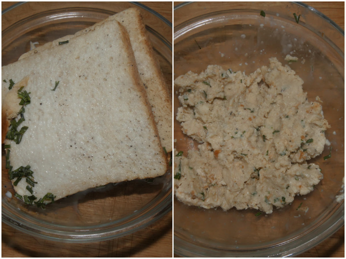 Fate ammollare il pane nel latte, quindi strizzatelo delicatamente. e uniteci un po' di era cipollina (se preferite, potete usare del prezzemolo).