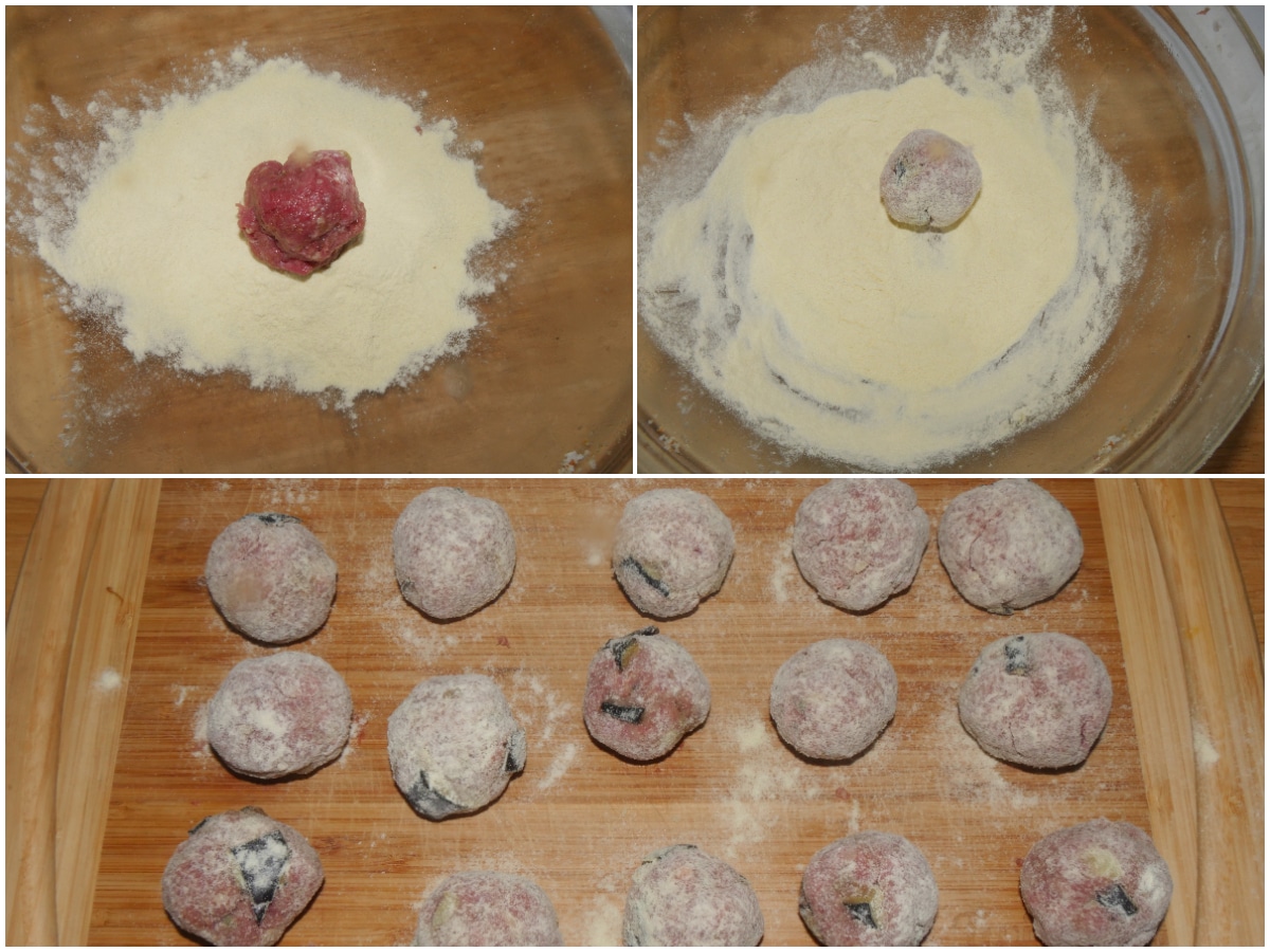 Passate le polpette nella farina di semola, impanandole in maniera uniforme 1 per volta.
