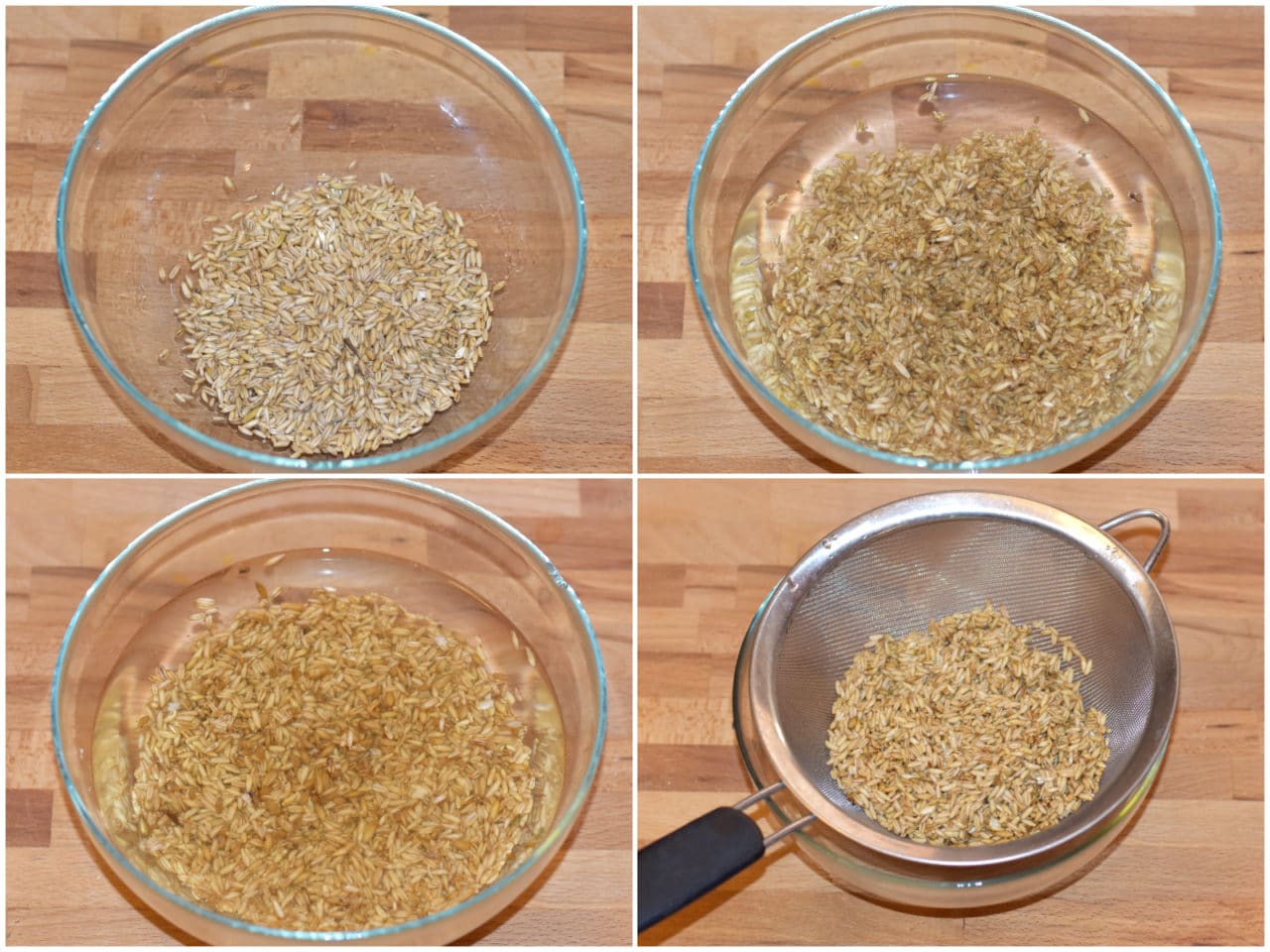 Mettete l'avena in una ciotola, copritela con abbondante acqua e lasciatela a bagno per 2-3 ore, quindi scolatela.