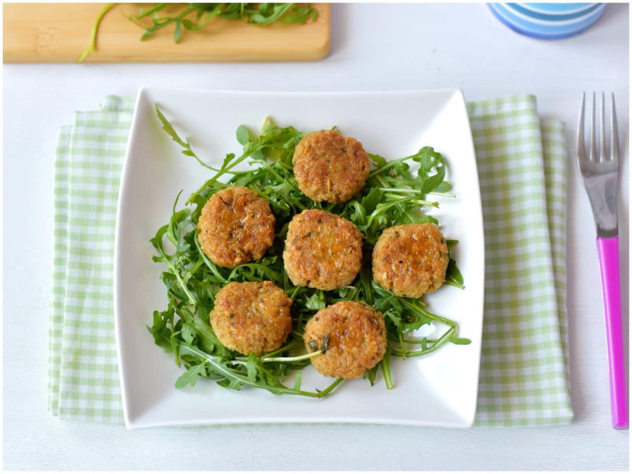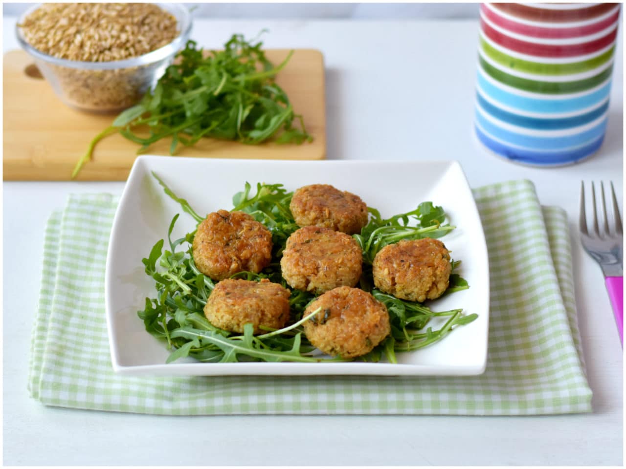 Le polpette con fiocchi d'avena sono pronte, non vi resta che disporle sulla rucola e servirle.