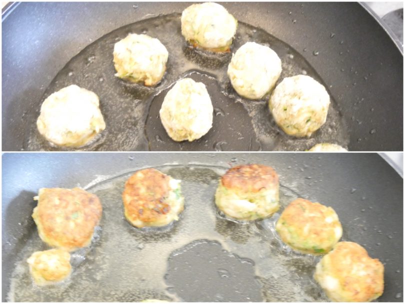 Impastate, quindi formate le polpettine con le mani umide e passatele man mano nella farina.