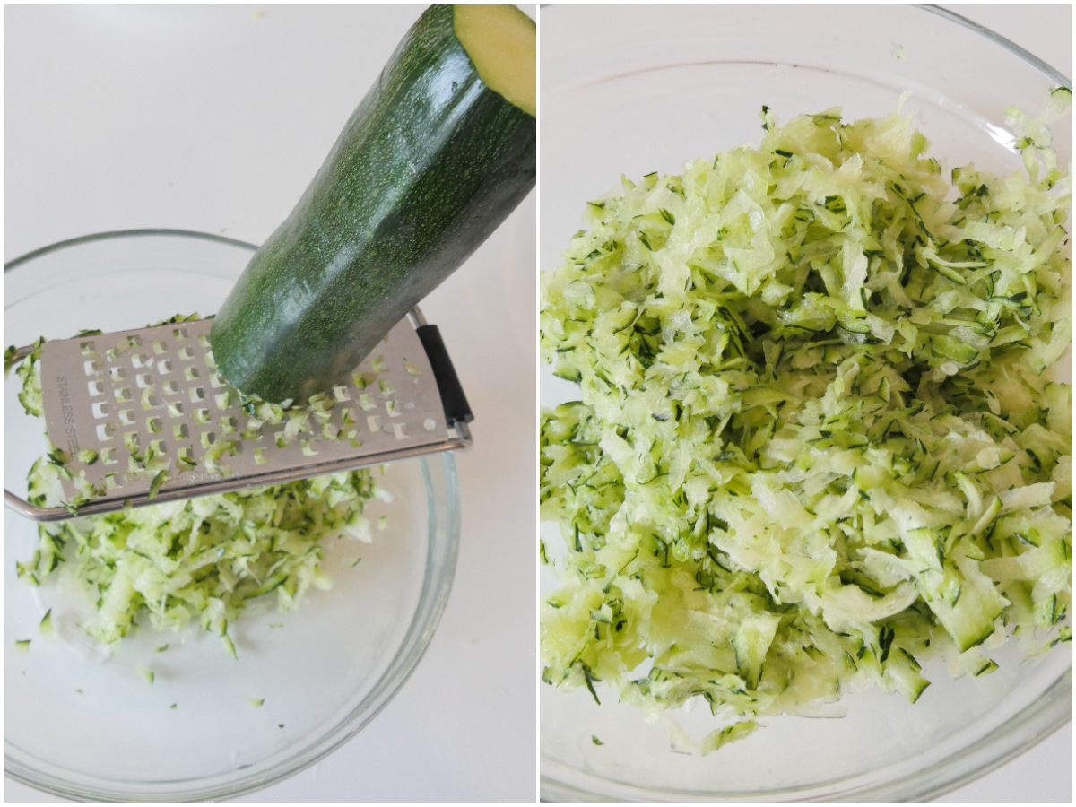Innanzitutto lavate le zucchine, asciugatele, mondatele e grattugiatele con una grattugia a fori larghi.