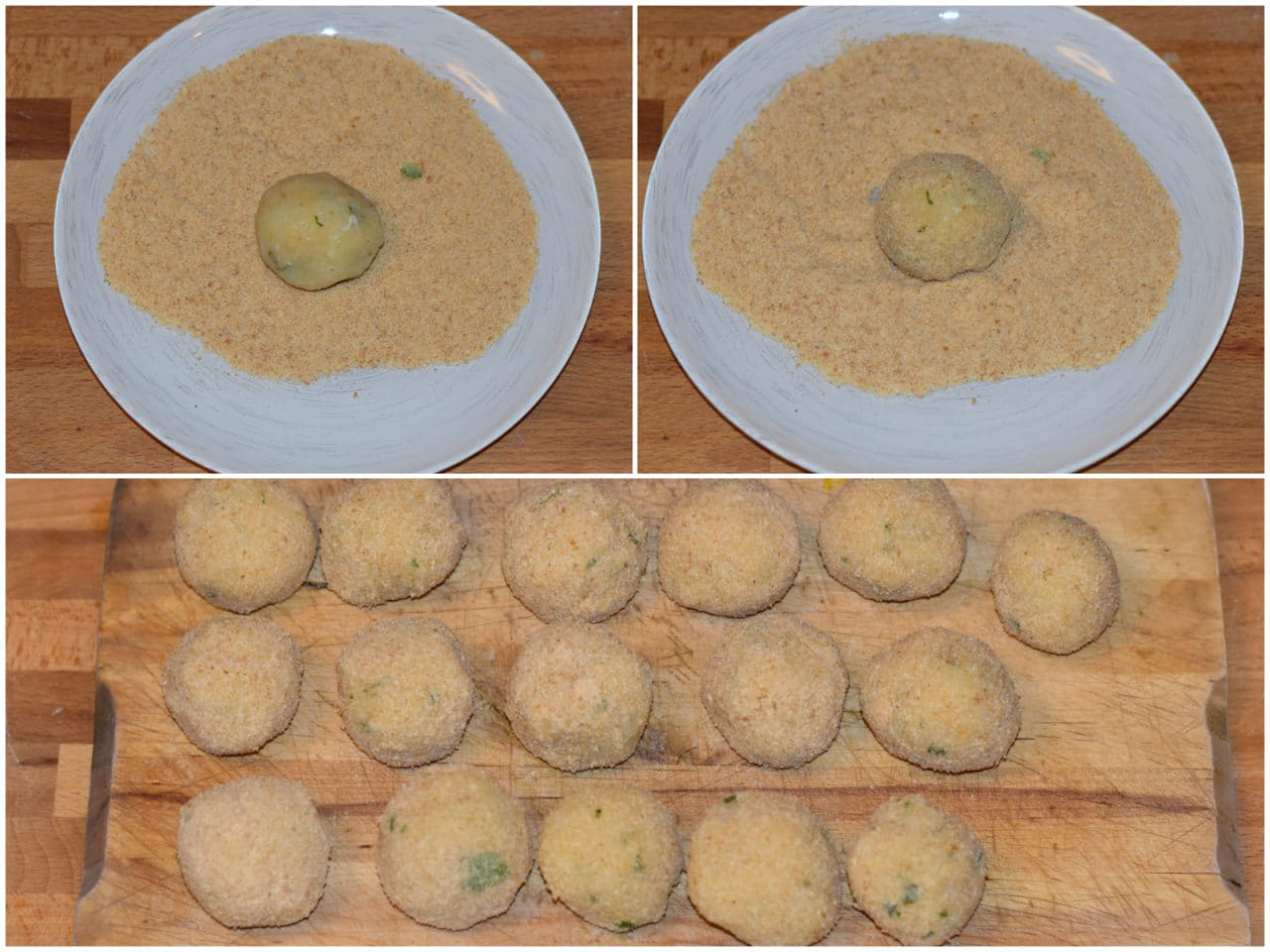 Formate delle palline prelevando 1 noce di composto per volta e passatele nel pangrattato.