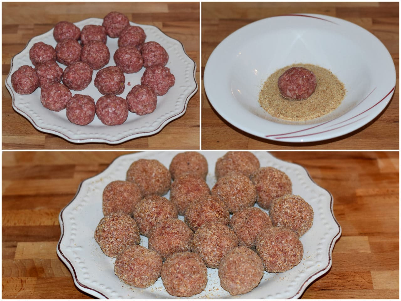 Prendete una noce di composto per volta, arrotondatela tra i palmi delle mani e passatela nel pangrattato.