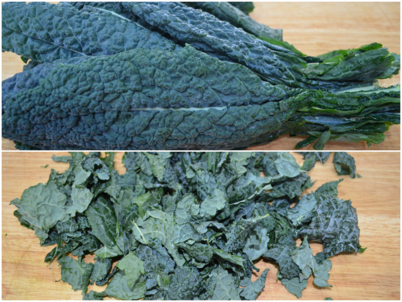 Mentre farro e patate si raffreddano, pulite il cavolo eliminando le foglie più esterne e le coste più dure, quindi tagliatelo a pezzetti o a striscioline piuttosto sottili.
