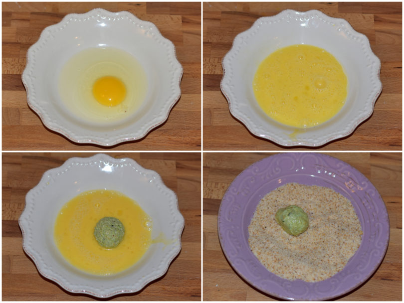 Passate le polpettine prima nell'uovo sbattuto e poi nel pangrattato.