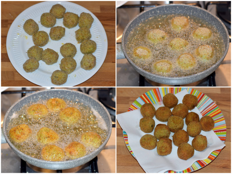 Quando saranno tutte pronte friggetele in abbondante olio già caldo.