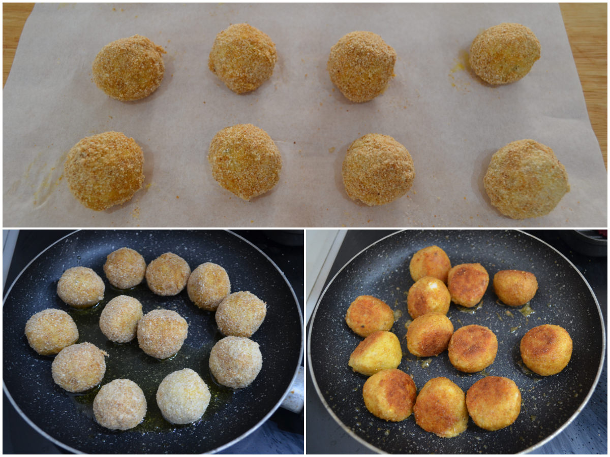 Procedete così per formare tutte le vostre crocchette, quindi passatele prima nell'uovo, dopo averlo leggermente sbattuto, e poi nel pangrattato.