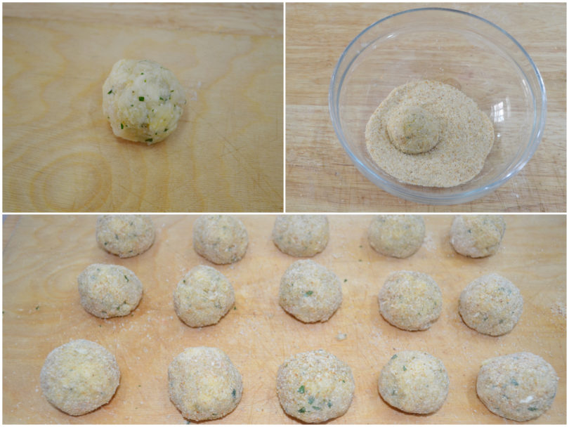 Con le mani umide, iniziate a realizzare le polpettine e una volta finito, passatele nel pangrattato.
