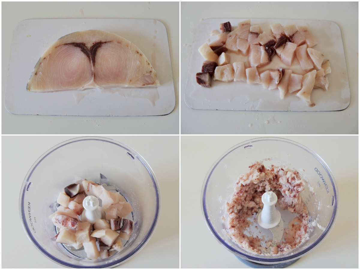 Innanzitutto pulite il pesce spada, eliminando la pelle e l'osso centrale, quindi tagliatelo in pezzi e frullatelo con un mixer.
