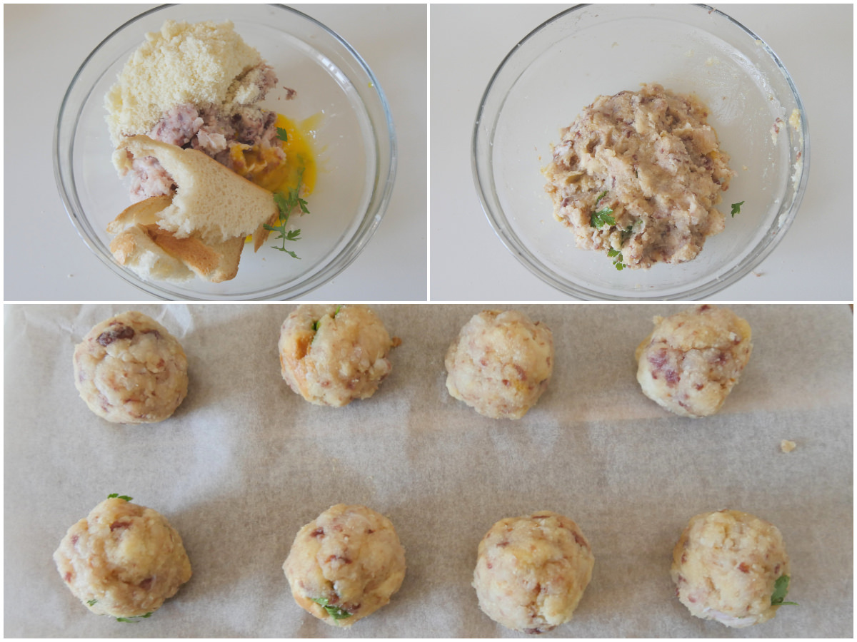 Amalgamate tutti gli ingredienti fino ad ottenere un composto omogeneo, quindi realizzate delle polpette poco più grandi di una noce.