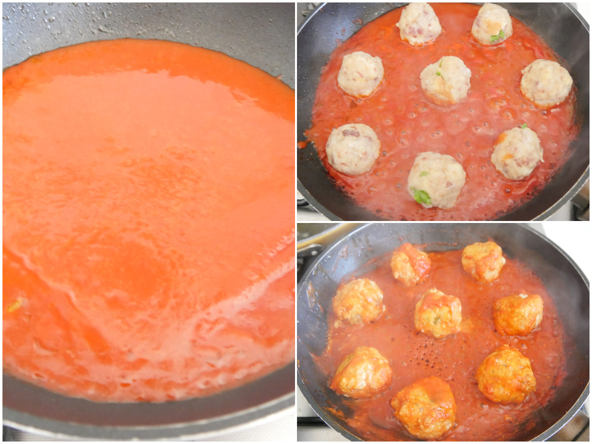 Unite quindi anche le polpette e proseguite la cottura a fiamma media, girando di tanto in tanto.