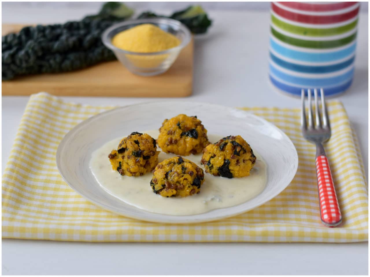 Ecco qua: le polpette di polenta e lenticchie sono pronte, non vi resta che servirle sulla fonduta di accompagnamento.