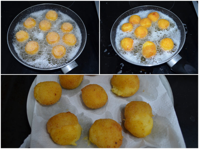 Infine friggete in olio di semi ben caldo, facendole dorare uniformemente.