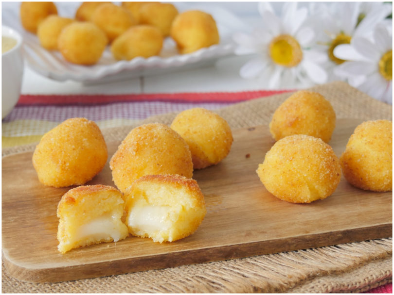 Le polpette di polenta sono pronte servitele calde o tiepide in modo da mantenere il cuore morbido.