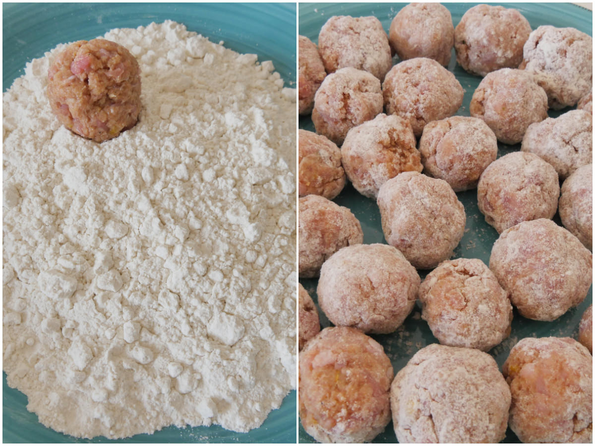 Con le mani umide, ricavate le polpette, quindi passatele tutte nella farina, ricoprendole in maniera uniforme.