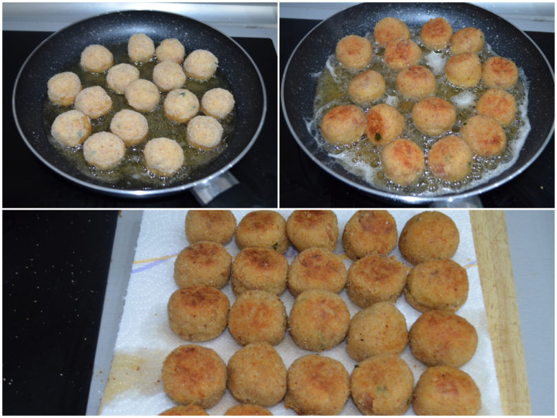 Scaldate l'olio in una padella ampia e iniziate la cottura, girando le polpette per farle dorare in maniera uniforme.