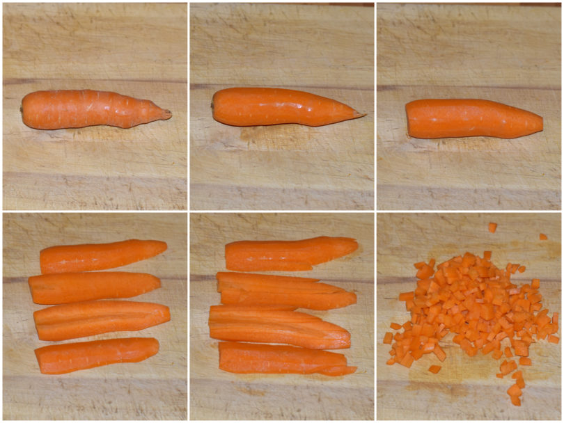 Mondate e tritate anche la carota, mondate i funghi se necessario.
