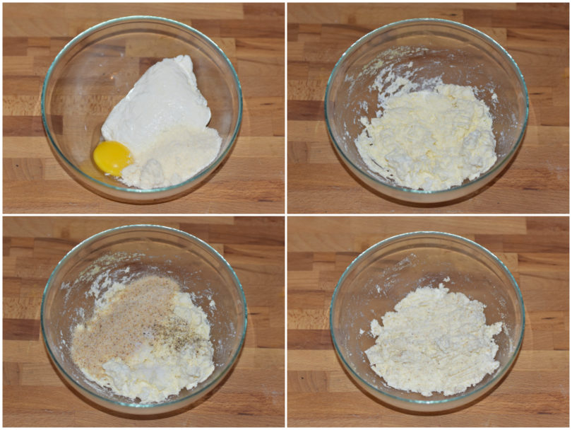 Innanzitutto lasciate scolare bene la ricotta in un canovaccio pulito o un colino a maglie molto strette, poi lavoratela in una ciotola con tuorlo e grana, infine incorporate anche sale, pepe e pangrattato, amalgamate e lasciate riposare per 10 minuti senza coprire la ciotola.